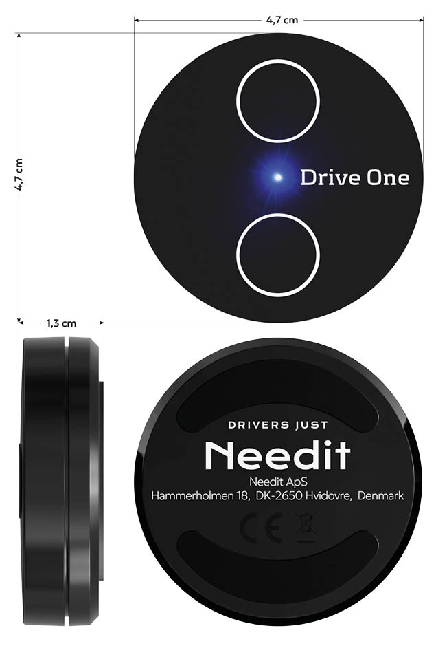 Drive One 2 er let at betjene og let at installere. Med kun to knapper, to farver og klare lyde, når du kører i trafikken, er det let at afkode, hvad advarslen handler om. Det er naturligvis også let at varsle dine medbrugere, mens du kører. Ét tryk. Mere skal der ikke til.